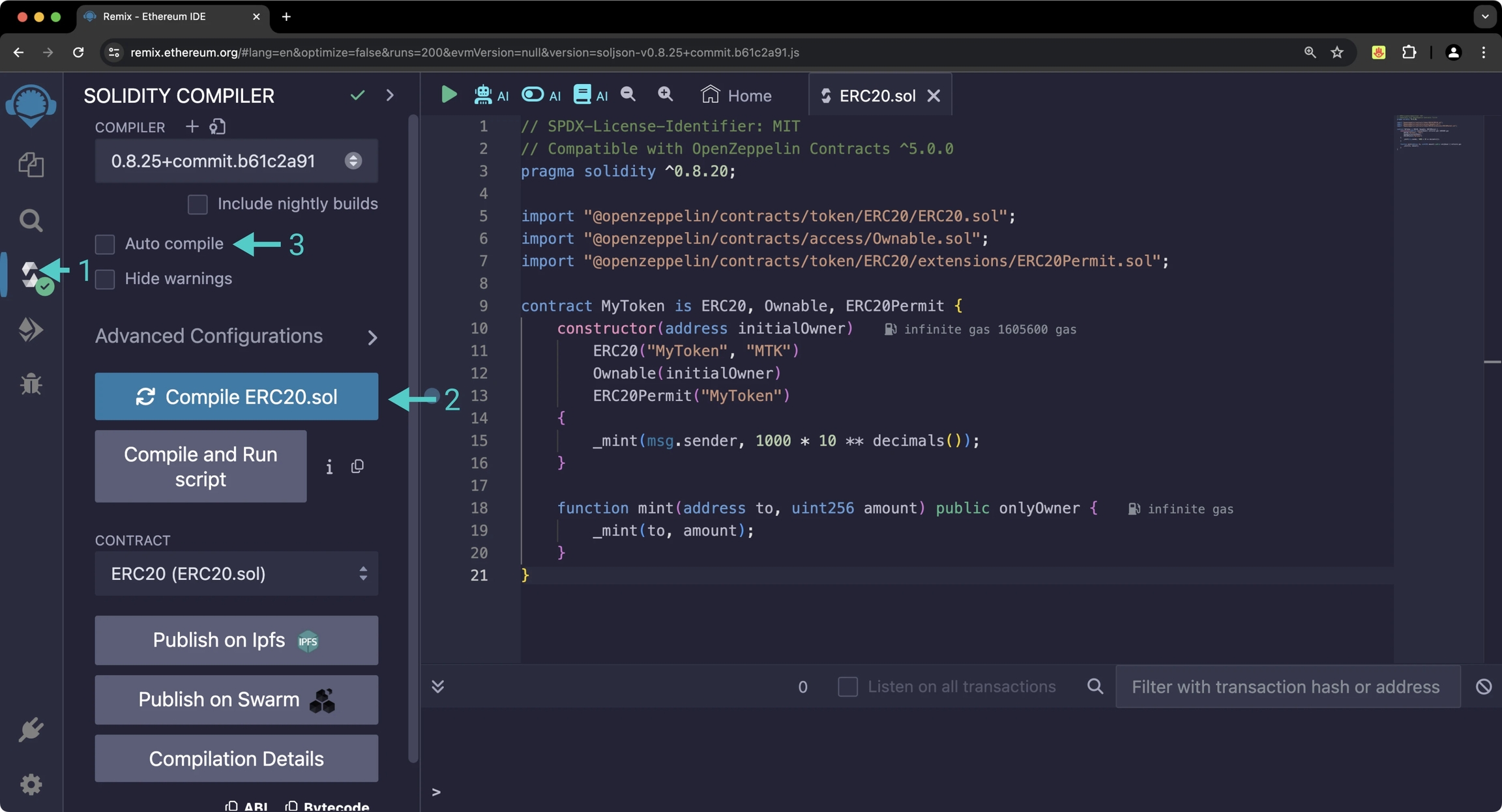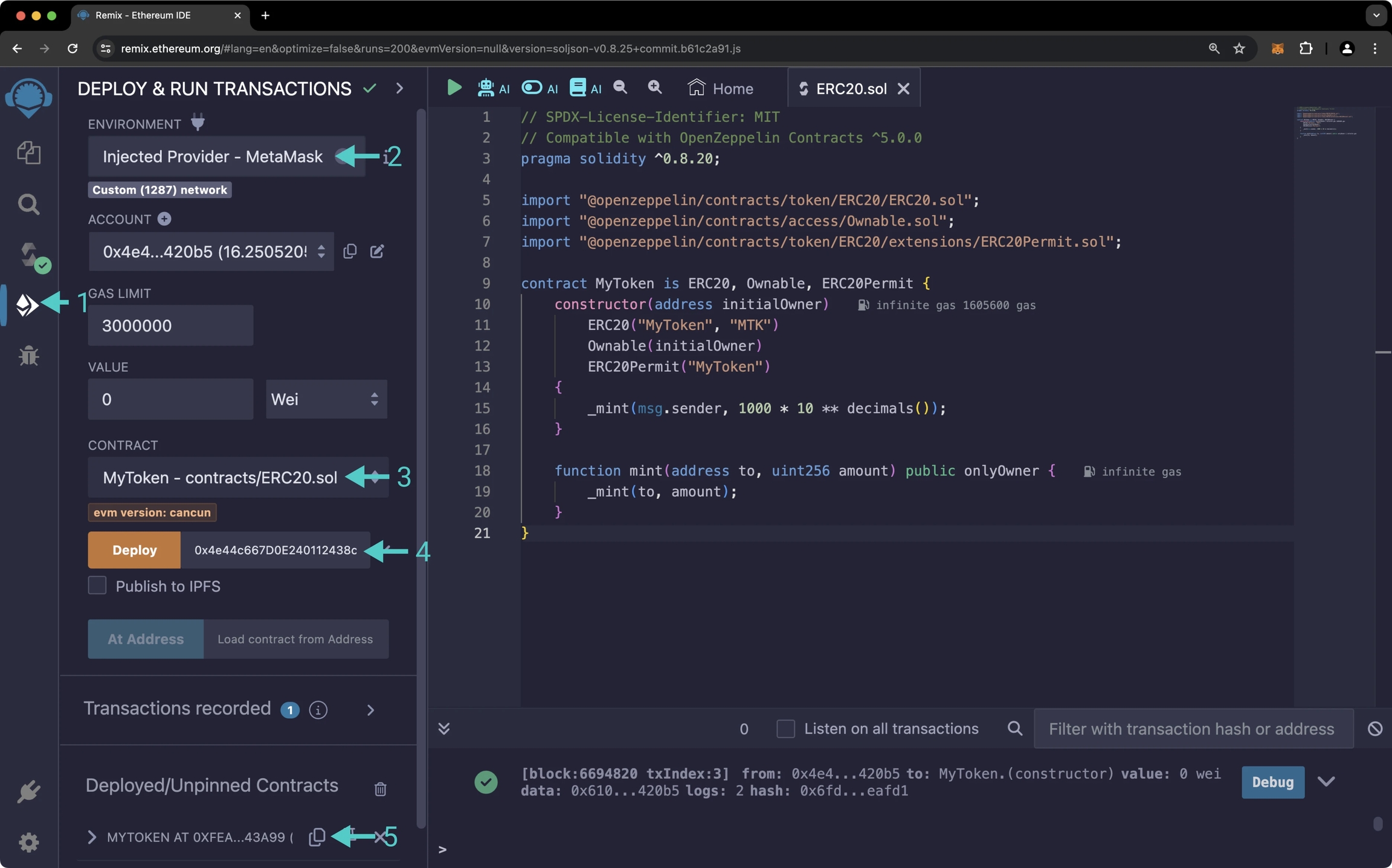 And that is it! You've deployed an ERC-20 token contract using OpenZeppelin's contracts and libraries. Next, you can interact with your token contract via Remix, or add it to MetaMask.