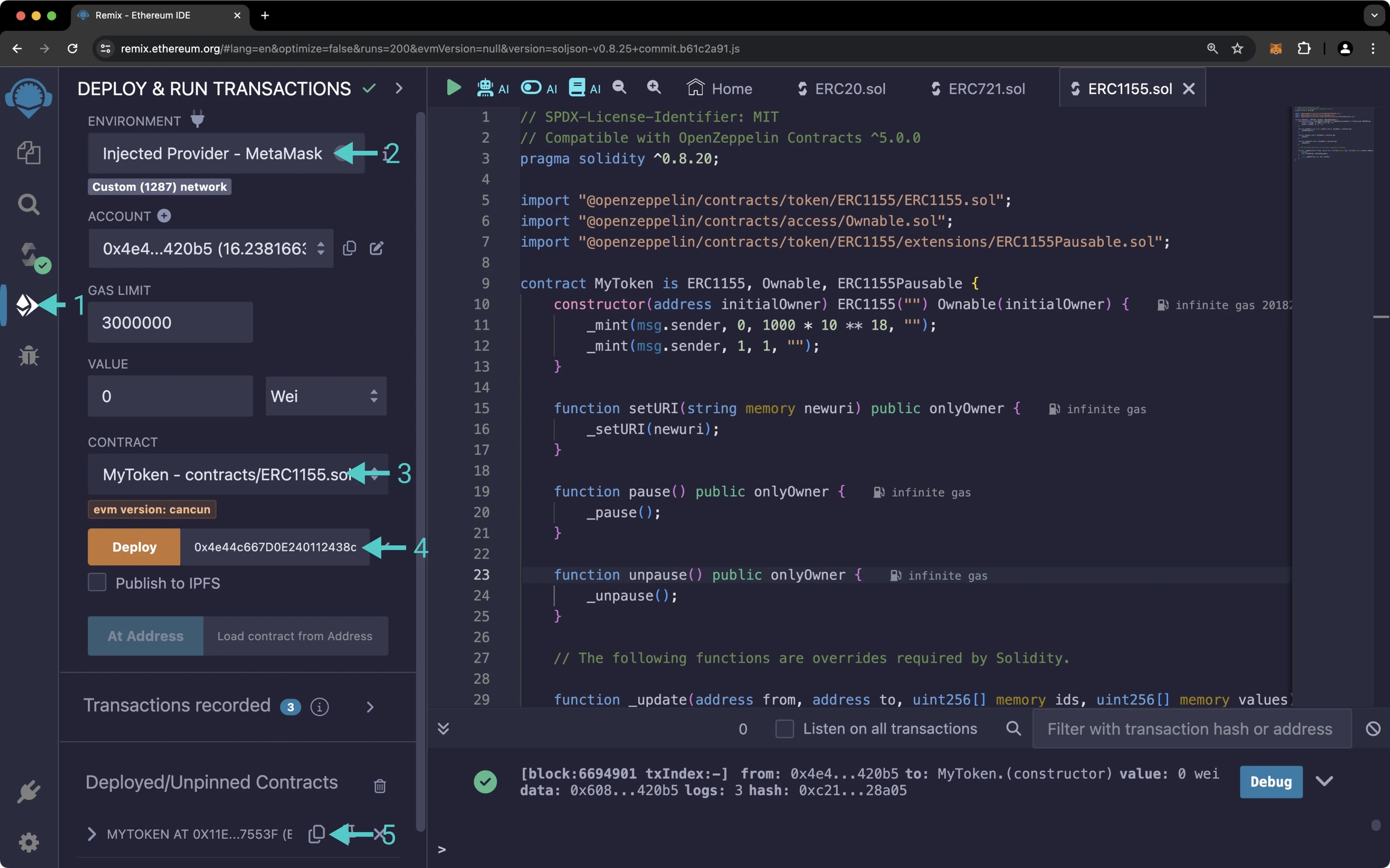 And that is it! You've deployed an ERC-1155 token contract using OpenZeppelin's contracts and libraries. Next, you can interact with your token contract via Remix.