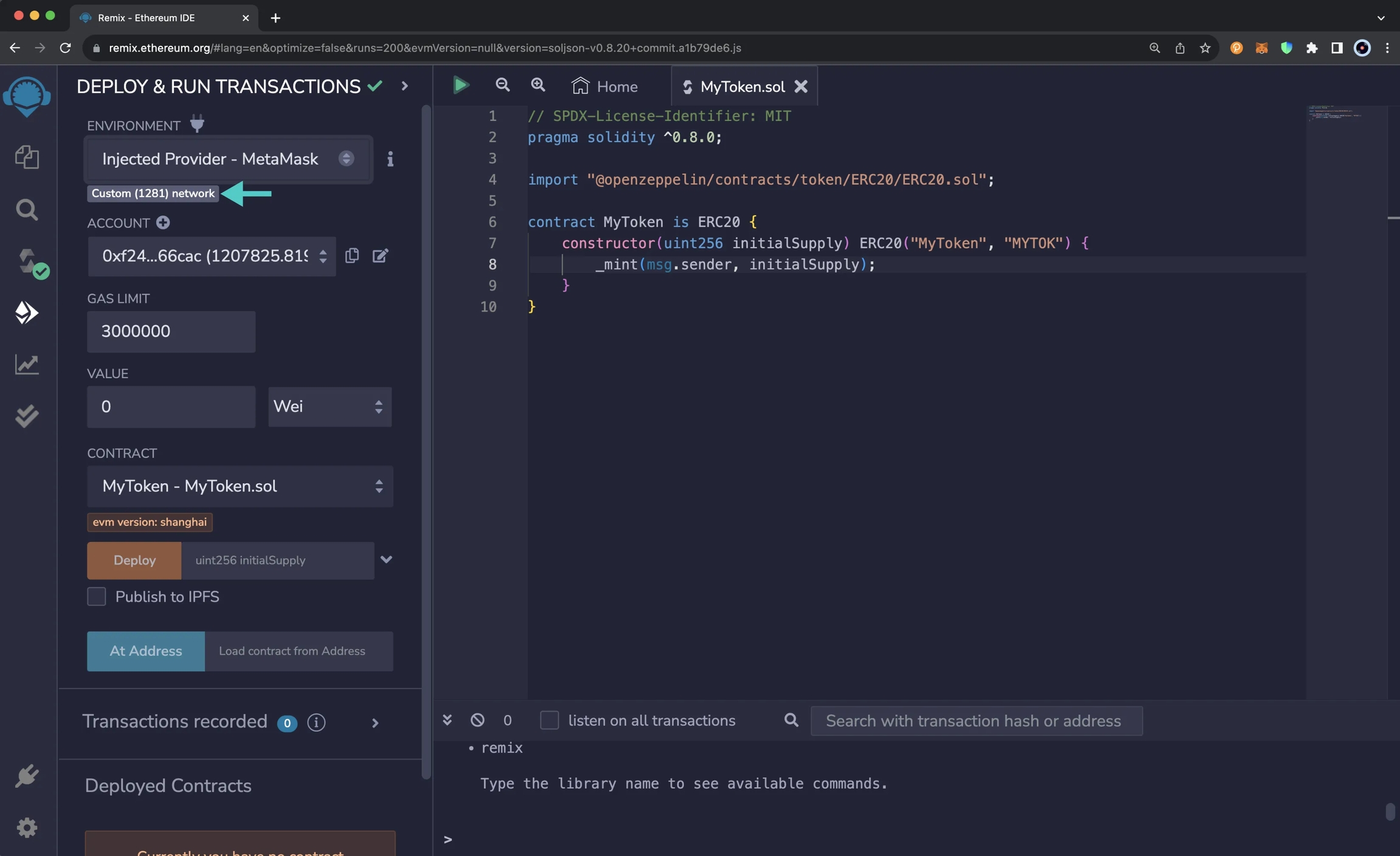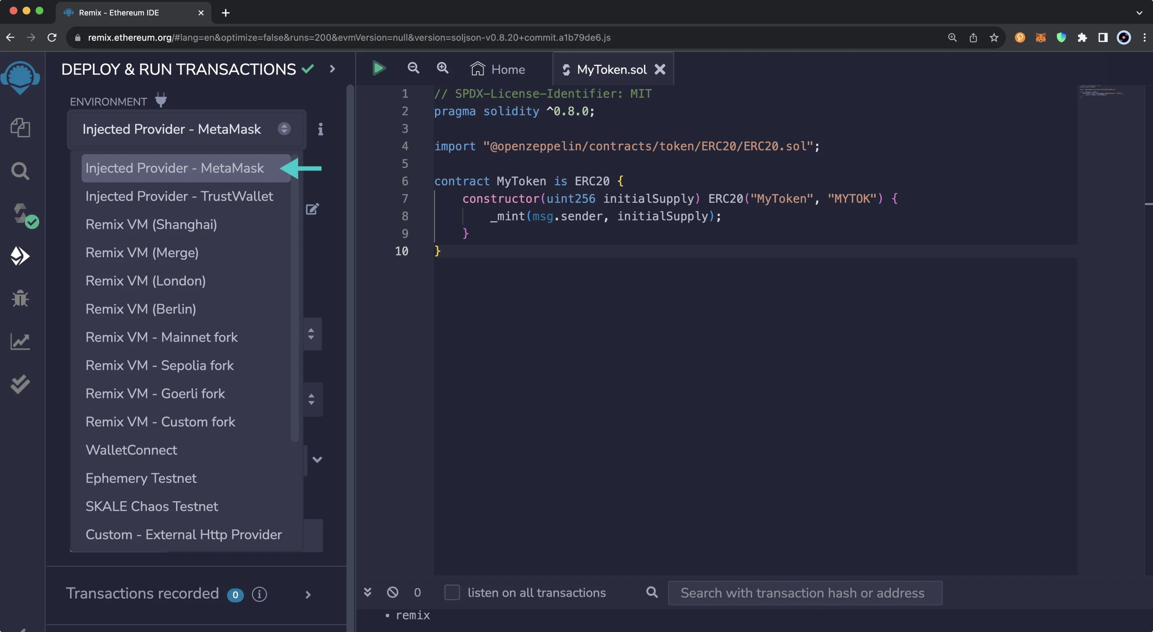 MyToken.solis the selected contractExpand the DEPLOY dropdown