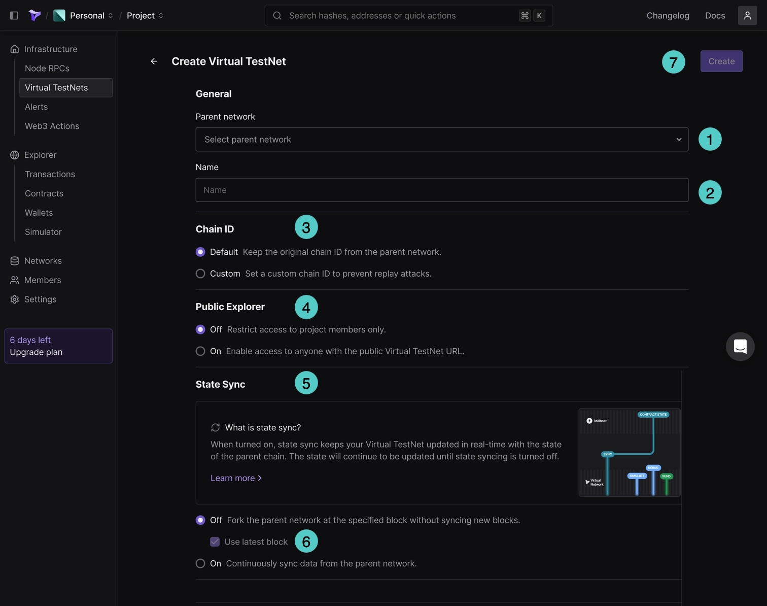 Tenderly makes creating a fork through the dashboard quite simple. To get started, click on Forks on the left-side menu and then click Create Fork. From there, you can take the following steps: