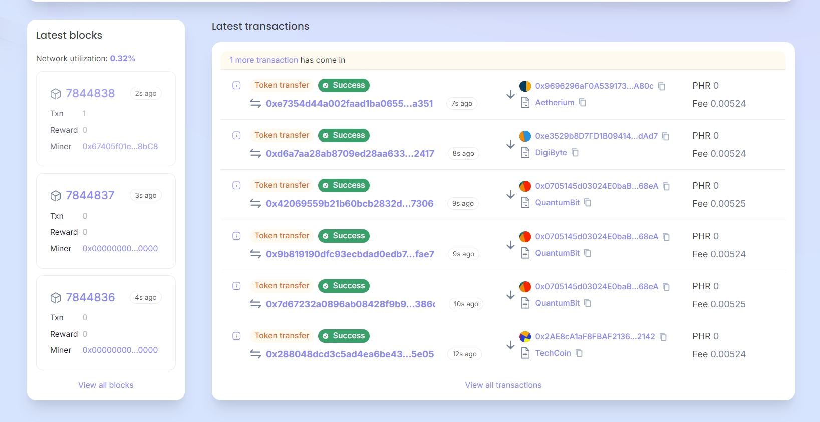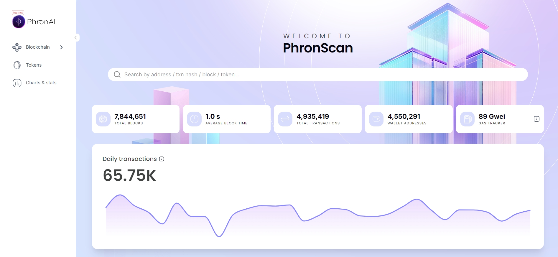 The Phron Explorer is available through PhronScan and provides real-time information on all on-chain activities.